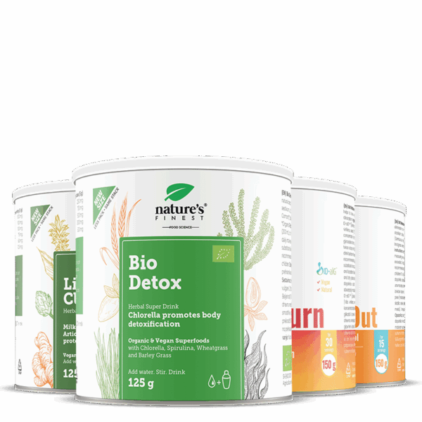 For the first 25 days, prepare freshly squeezed orange or lemon juice in the morning, mix it with a little water and add 1 teaspoon (5g) of DETOX green mixture. This awakens the body and stimulates the detoxification process. In the evening after dinner, mix 1 teaspoon of LIVER CLEANSE in a glass of water to stimulate a nighttime liver cleanse.