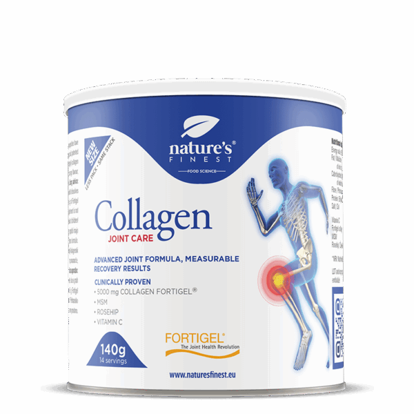 Collagen JointCare is a formula with Fortigel® collagen peptides and rosehip. It contributes to normal collagen formation for the normal function of bones and cartilage².