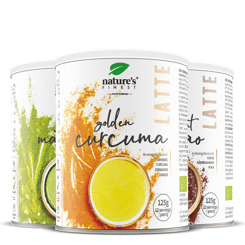 Nature’s Finest latte drinks have many benefits for our health and well-being. Matcha Latte helps boost energy, Golden Curcuma helps improve digestion and the immune system, and Good Night helps relaxation and better sleep.