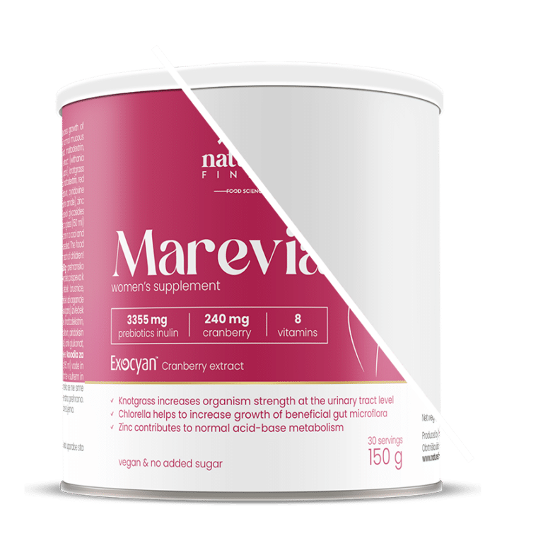 Marevia contains Exocyan™ cranberry extract and knotweed extract, which is known for its incredible benefits for the urinary tract. Knotweed supports the elimination of water on urinary way and increases organism strength at the urinary tract level.