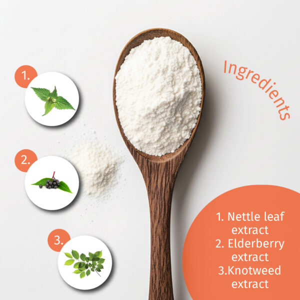 Every day, dose 2 scoops (10 g) of OK!WaterOut into a glass of water. With one scoop you will consume 50mg of knotweed, 100 mg of nettle extract and 100 mg of elderberry extract.