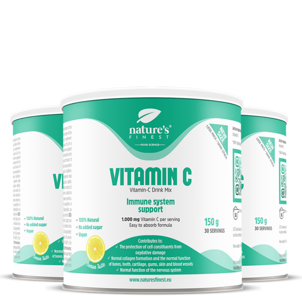 Vitamin C plays a role in the protection of cells from oxidative stress. It contributes to the functioning of the nervous system, has a role in the functioning of the immune system and contributes to the reduction of tiredness and fatigue . Vitamin C also contributes to normal collagen formation.