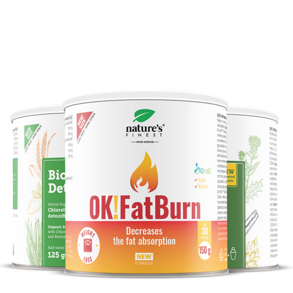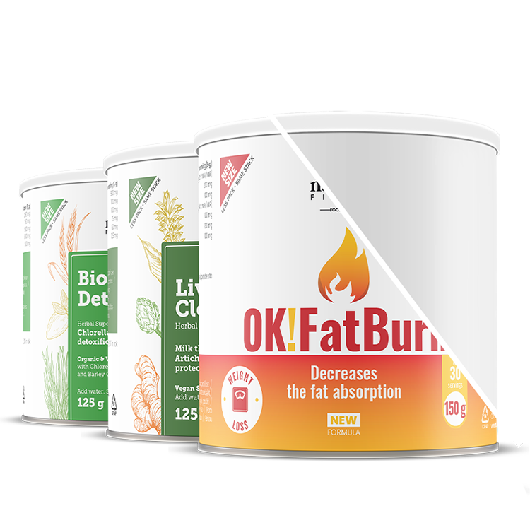 In the evening before dinner, stir in 1 scoop (5g) of OK! FATBURN drink in a glass of water, then after dinner stir 1 teaspoon of LIVER CLEANSE in a glass of water to stimulate liver cleansing overnight.
